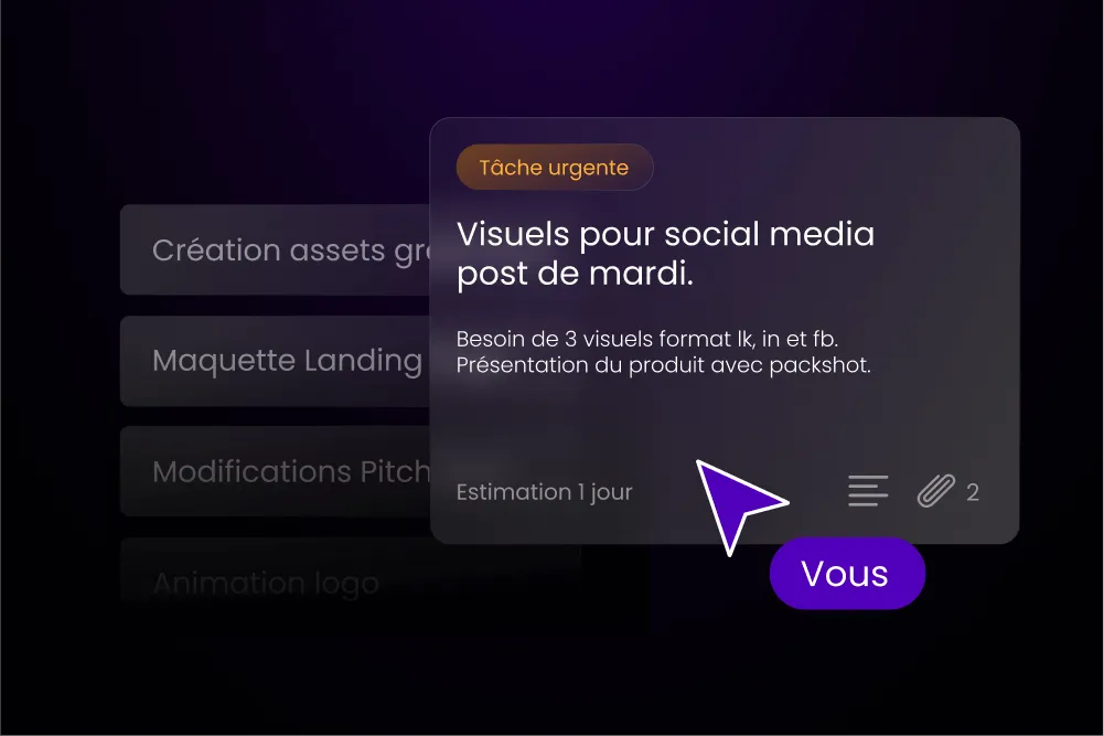 Chaque client est différent, nous définissons une méthodologie qui vous correspond. Vous recevrez des accès Google Drive et Trello, c'est là que toutes les demandes de projets seront gérées.